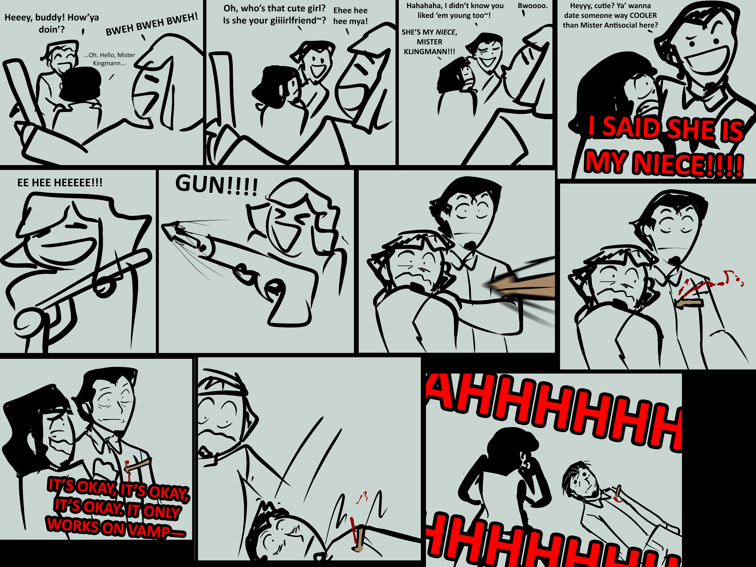 "Wanna' play tag?" *Hits with metal pole* "You're it! Bwhewhehweh!"