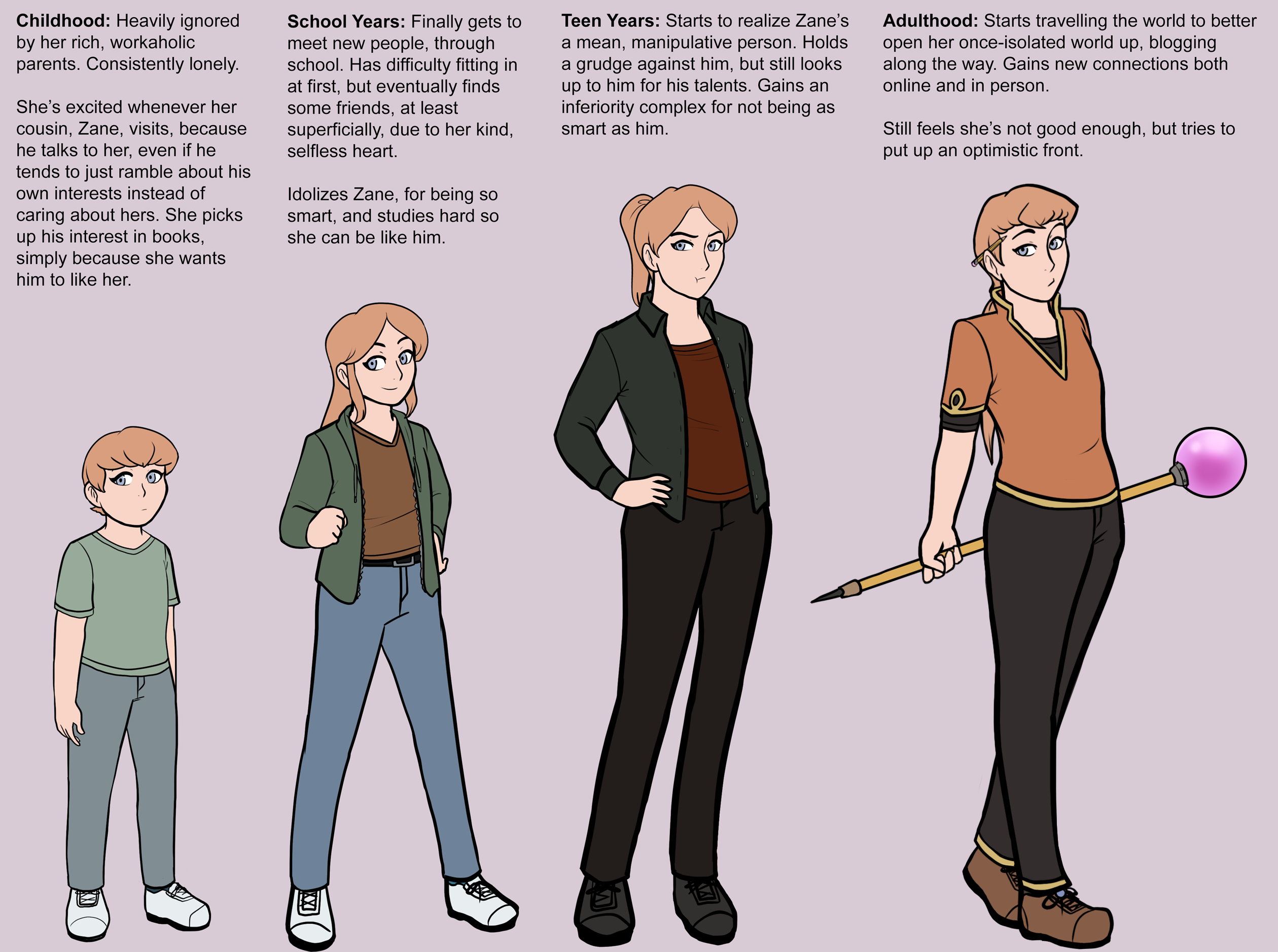 Victoria grows up to parents rarely pay her any mind. She's lonely, but thankfully, her older cousin, Zane, starts interacting with her instead. Not having anyone else, she grows very attached to him, and looks up to him for how smart and talented he is, hoping to be just like him when she grows up.