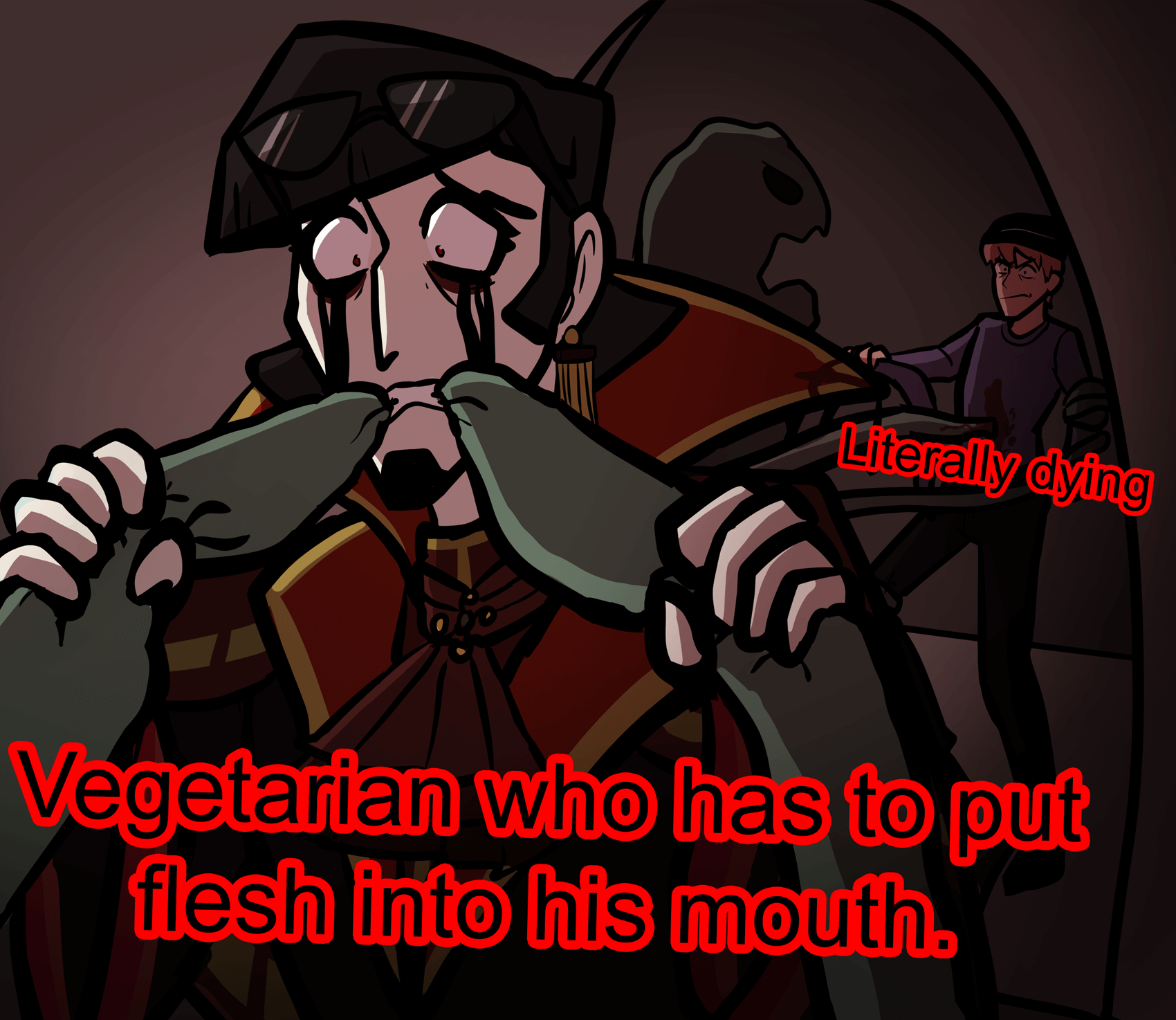 - He's a vegetarian because he could never eat another living creature's flesh. He's a little uncomfortable whenever he has to be near people eating meat.
