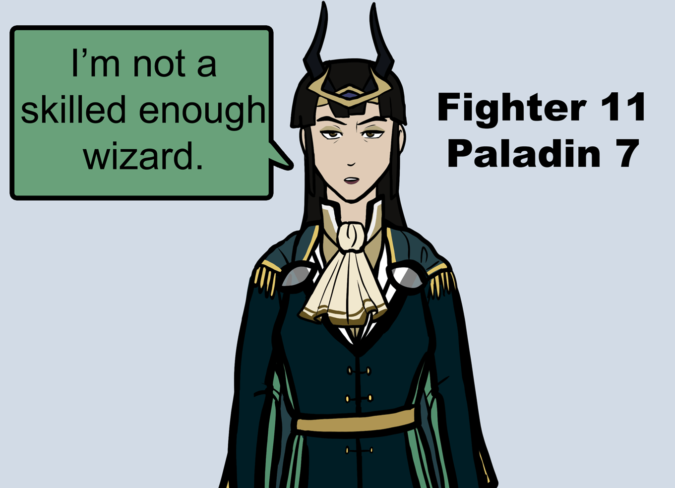 - She'll call herself a Wizard, when she's actually a Paladin.