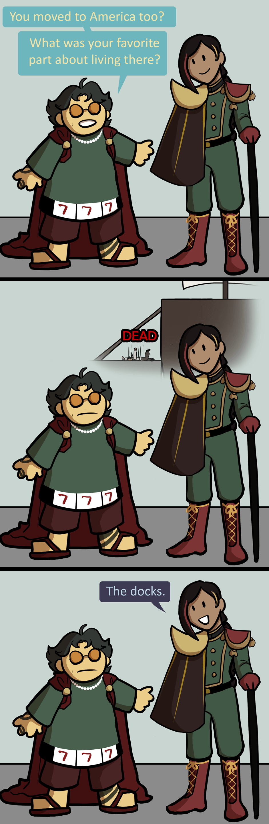 Teobaldo was born in 1800s Spain, enjoying figure skating from a young age. In the late 1800s, he decided to leave the struggling Spain, excited to experience "The New World," but he falls off the ramp when departing the boat, and dies.